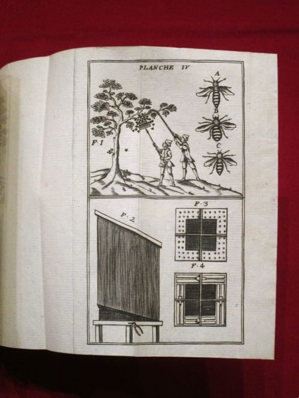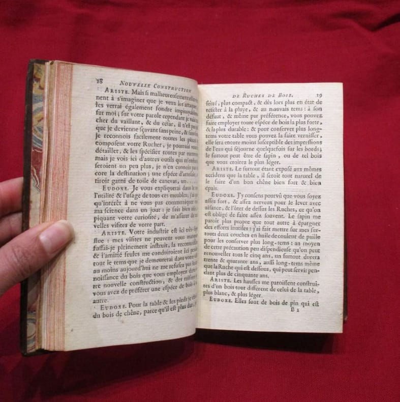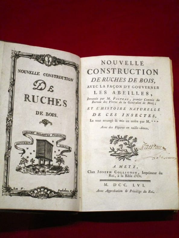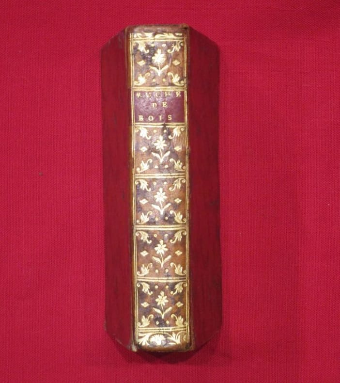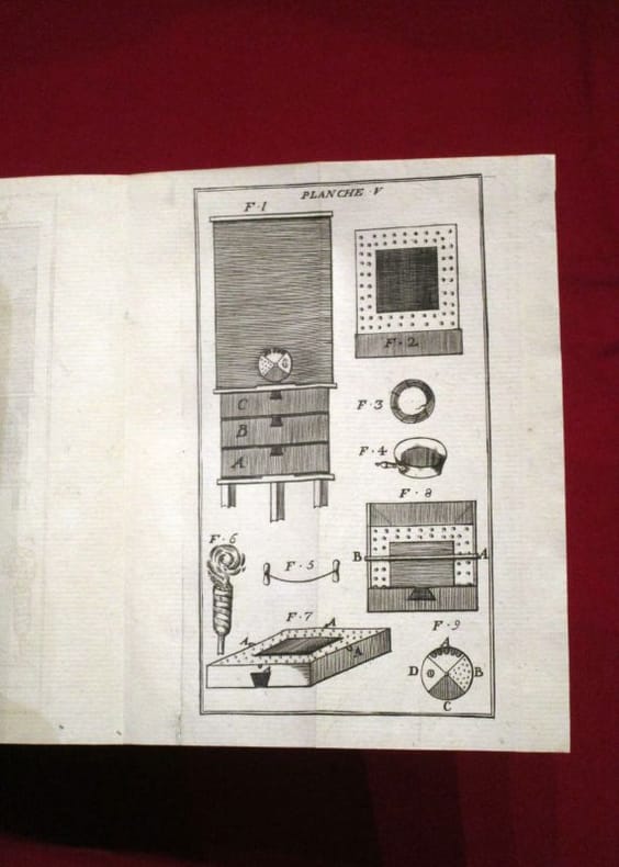 Chez Joseph Collignon 1756 A Metz, Chez Joseph Collignon, 1756, 1 volume in-8 de 100x150 mm environ, XXVIII, (1) f., 422 pages, (1) f., complet du frontispice et des 5 planches. Plein veau marbré, dos long portant titre doré sur pièce de cuir rouge et fer dorés, encadrement des plats à froid, filet doré sur les coupes, tranches rouges, gardes marbrées. Coiffe de queue absente, coins frottés, des épidermures, ex libris à l'encre sur la page de titre, intérieur frais, bon état général, bel exemplaire.