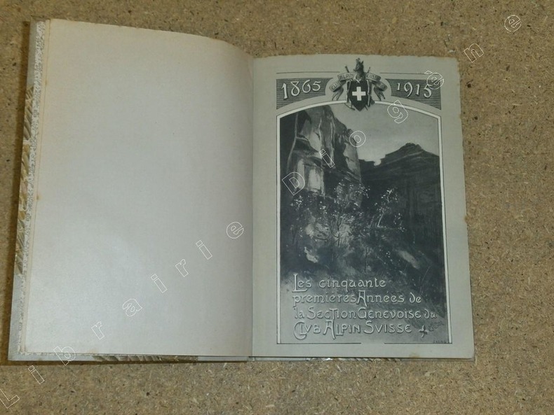Avec 21 planches hors-texte, dont 1 burin:Salève,Aiguille de la Mule et de nombreuses illustrations. Genève, Imprimerie Albert Kündig,1915.Grand in-8 (23,5x16cm) broché de couverture rempliée et ornée,avec un petit manque au dos. VIII,270pp.
