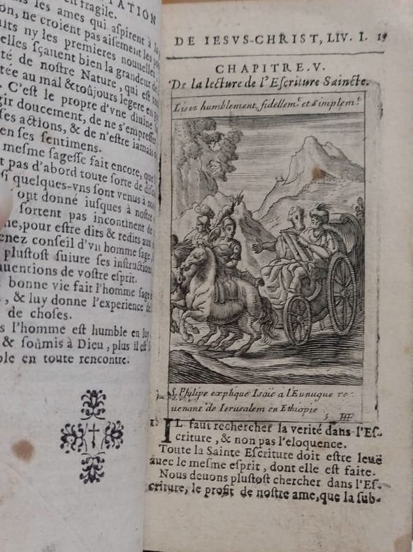 henault 1664 in-32 A Paris, Chez Jean Henault, 1664, 1 volume de 65x125 mm environ, (2) ff., (3 ff. (oraison dédicatoire, table), 420 pages, (1) f., plein granité brun, dos à nerfs portant titres dorés, orné de caissons à motifs dorés, coupes dorées. Édition enrichie de 115 figures in-texte en taille-douce et 4 gravures hors texte. Coins émoussés, coiffes arasées, un mors en partie fendu, intérieur bon état.