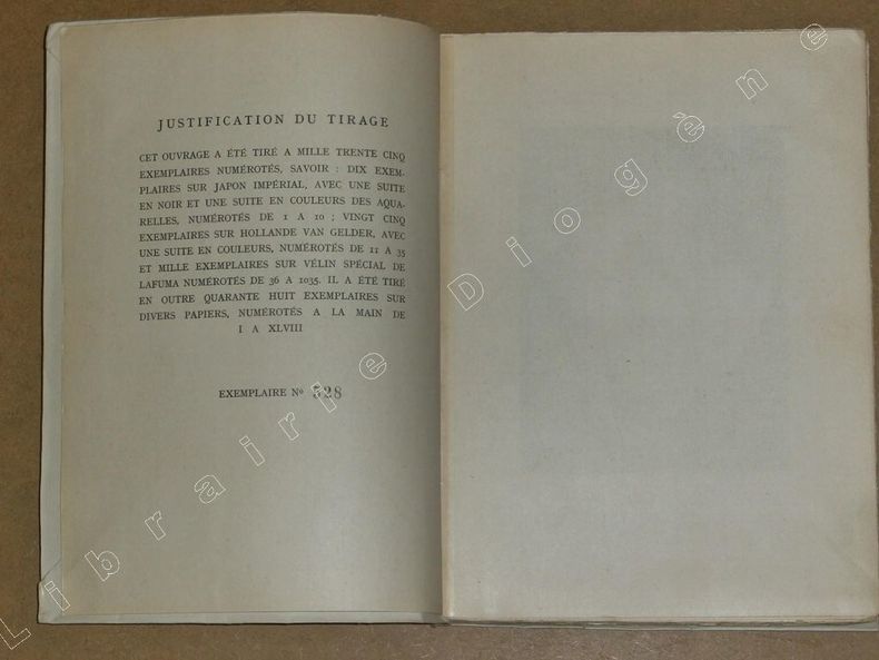 1929 Hazan, 1929, 155 p., broché, édition originale numérotée 528 (l'un des 1000 ex. sur vélin spécial Lafuma), complet des 7 hors-textes, couverture légèrement salie, bon état.