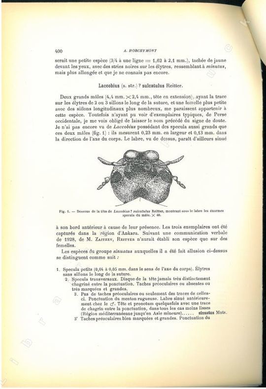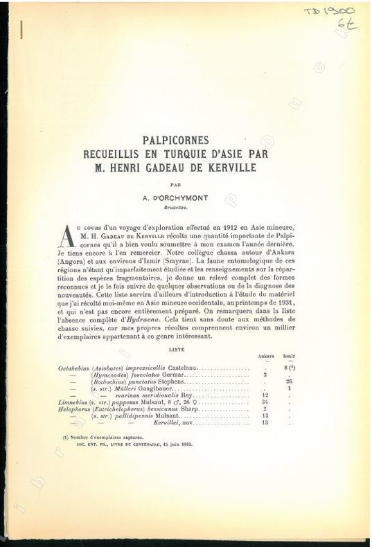 1932 Société Entomologique de France, livre du centenaire, 1932 : in-8, broché extrait, pp. 393-401, 1 figure in-texte, sans couverture. Très bon état, non coupé.