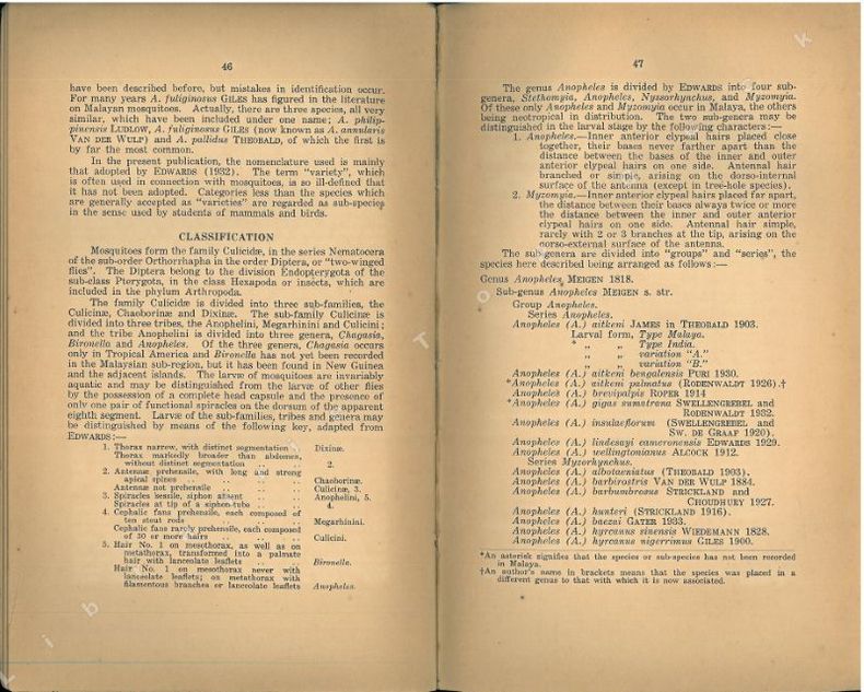 1934 Singapore, Malaria Advisory Board, 1934 : in-8, broché 160 pp., 187 figures in-texte, couverture imprimée. Très bon état, couverture légèrement défraichie, nom à l'encre sur le 1° plat, papier bruni, petites déchirures en marges inférieures réparées !