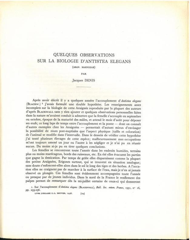 1936 Paris, Firmin-Didot, 1936 : in-4°, broché édition limitée à 350 exemplaires, frontispice, 379 pp., 16 planches hors-texte dont 2 en couleurs, nombreuses figures in-texte, cachets de bibliothèque sur le 1° plat, dos du frontispice, titre et liste des souscripteurs, petite tache sur le 1° plat, nombreux articles traitant des cétacés, mollusques, péripates, crustacés, arachnides et insectes. Très bon état.