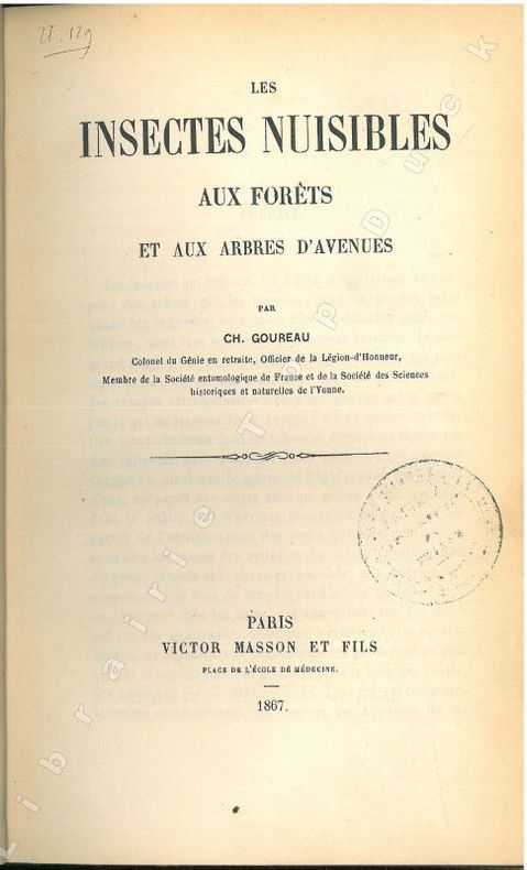 1867 Paris, Victor Masson, 1867 : in-8, relié 375 pp., reliure de l'époque en demi-percaline verte, titrage doré, filets à froid, ancienne étiquette papier au dos. Très bon état, coins et coiffes légèrement émoussés, cachet de bibliothèque discret en page de titre, rare !