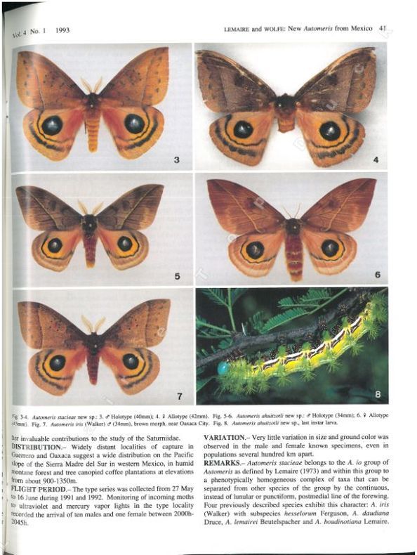 1993 Tropical Lepidoptera, 4(1), 1993 : in-4°, broché extrait, pp. 39-44, 10 figures in-texte,