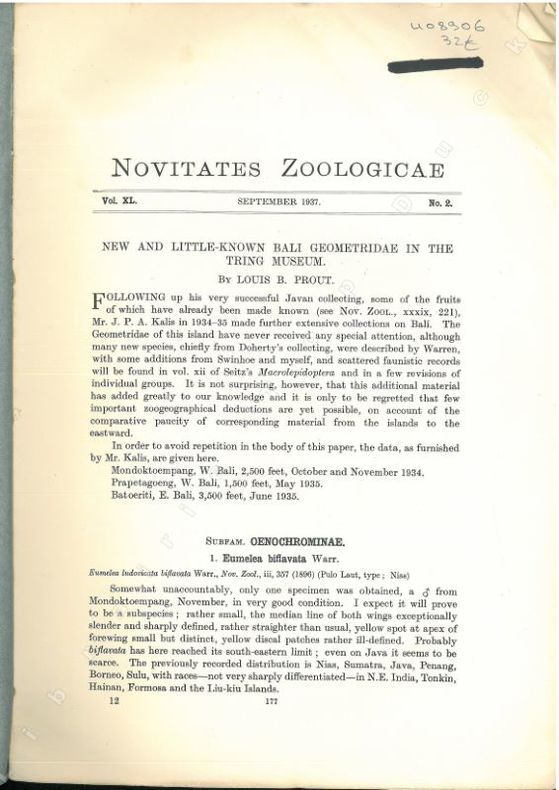 1937 149 p. (= pp. 177-325), 57 figs, 2 pls, paperbound. Novitates Zoologicae, vol. XL, n° 2. Upper right corner bumped, else good.