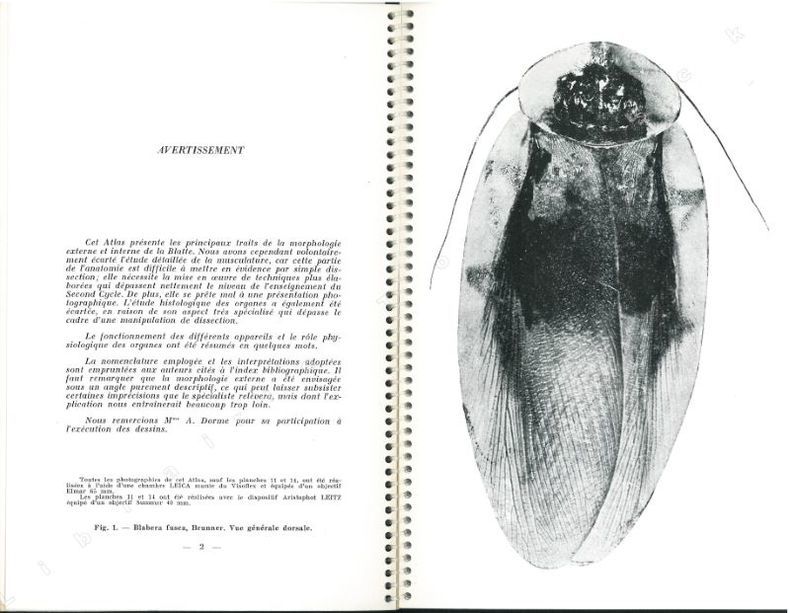 1969 Doin-Deren, 1969 : in-8, broché 67 pp., 30 figures in-texte, couverture illustrée, reliure spirale, collection "travaux pratiques de biologie animale". Très bon état, bien complet de la page repliée d'errata !