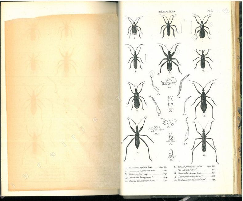 1840 4 volumes (complete). cxxv, 324, [1], 563, [1], 672, 600, [1] p., 43, 38, 72, 46 pls, contemporary dark violet (almost black) half calf (spine richly gilt), marbled boards (rubbed), blueish-green and brown marbled end-papers, edges light blue. With scattered foxing. very small stamp on title-page volume 1, 2 plates cut short (with loss of tip of wing of butterfly), one blank margin of one plate repaired.Emphasis in this series was on Coleoptera which was treated much more exhaustively than the other groups by le Comte de Castelnau. This is a good, complete set in an attractive period binding.