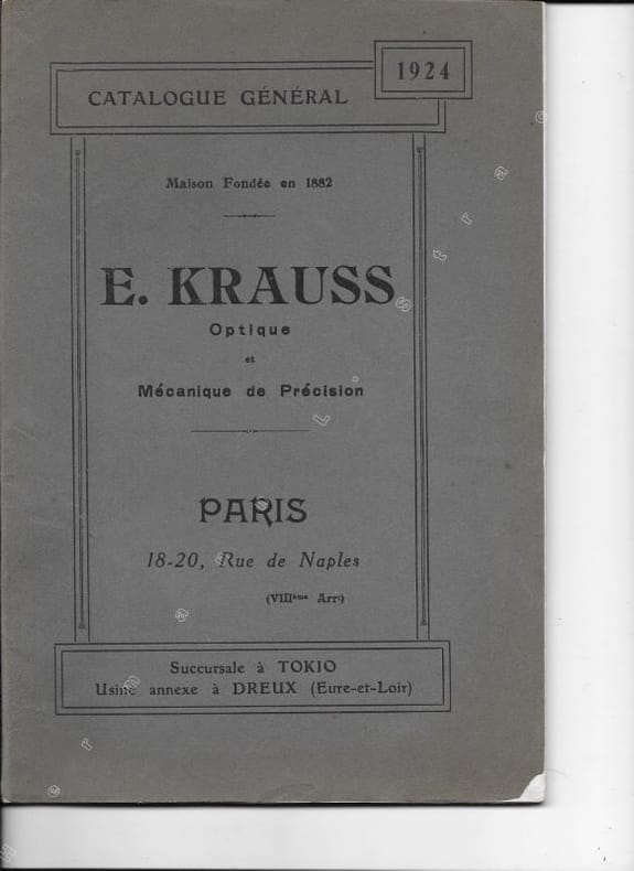 1924 72 p., numerous figures, paperbound (original printed covers). Inserted is: the 1924 Tarif du Catalogue Général (8 p.) and the 1924 pamphlet, Microscopes et Accessoires. Nouveaux Modèles (16 p., num. figs).