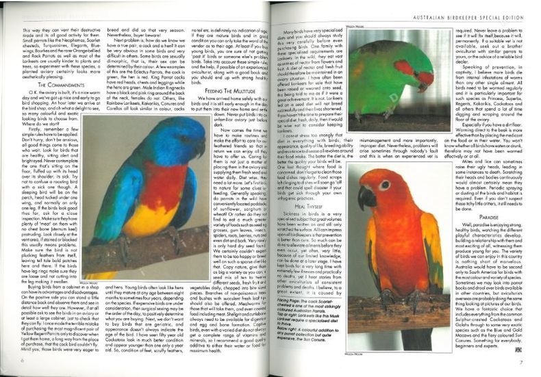 1991 South Tweed Heads, Australian Birdkeeper, 1991 : in-4°, broché 128 pp., nombreuses photos couleurs in-texte, couverture illustrée. Très bon état.