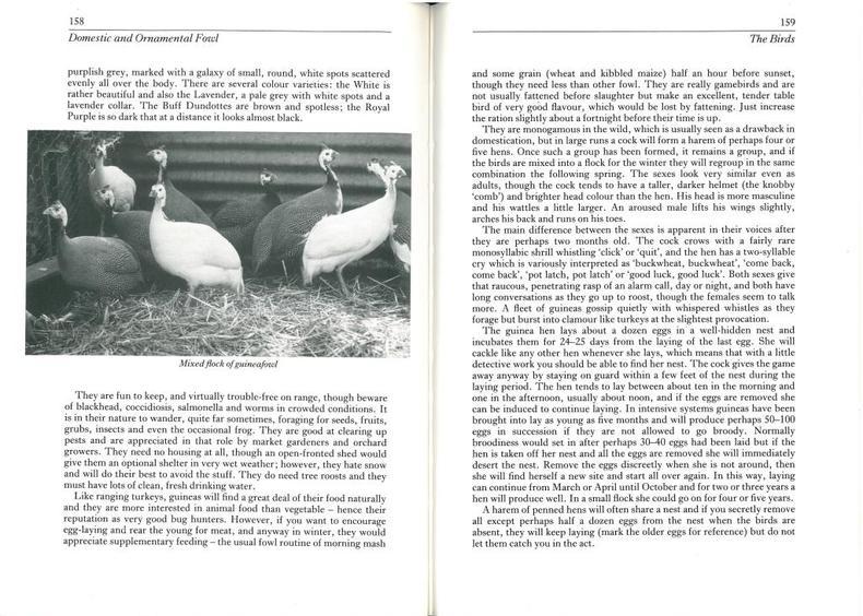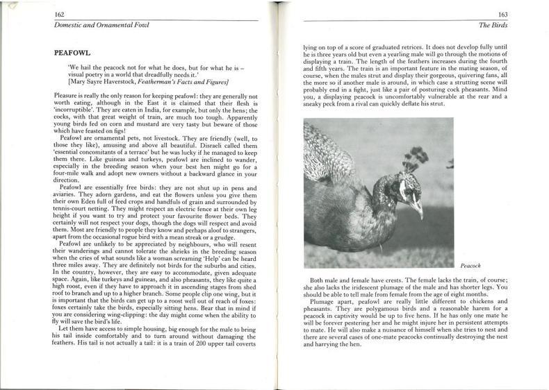 1989 London, Pelham Books, 1989 : In-8 Raisin, Cartonnage d'éditeurs. 266 pp., 46 photos N&B, 16 illustrations in-texte, petite déchirure à la jaquette sans manque, un bon guide sur l'élevage des poules, dindes, pintades, paons, faisans d'ornement, cailles, autruches, pigeons, canards et oies domestiques et d'ornements Jaquette Très bon état, Couv. fraîche, Dos impeccable, Intérieur frais.