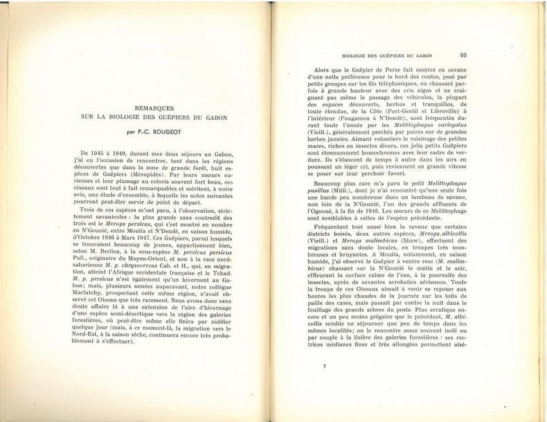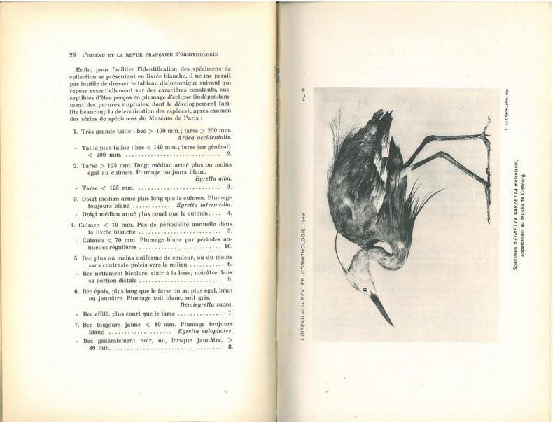 1949 Paris, S.O.F., 1949 : In-8 Raisin, Broché. 112 pp., xiii, 5 planches N&B hors-texte, traite d'ornithologie par les plus éminents spécialistes de l'époque, suivi du n° 4 du Bulletin des stations françaises de baguage, 26 pp. Parfait état, Couv. convenable, Manque en coiffe de pied, Non coupé.