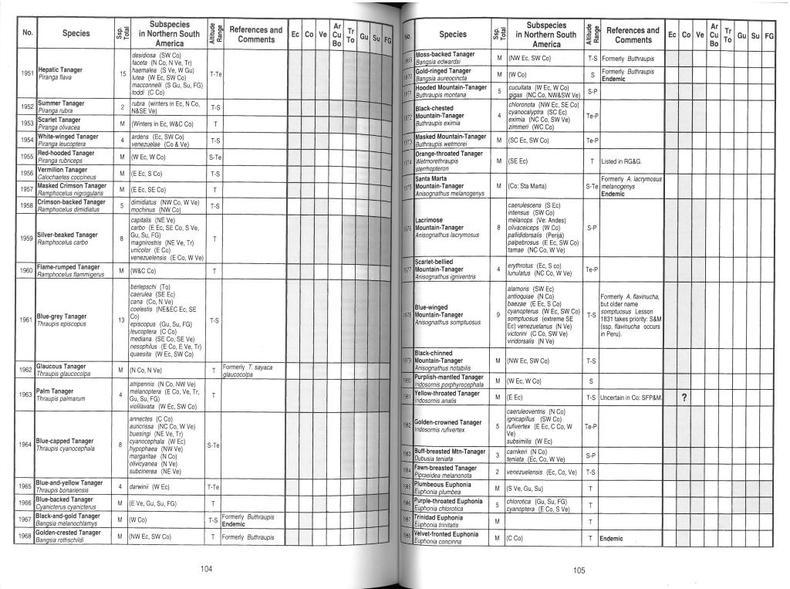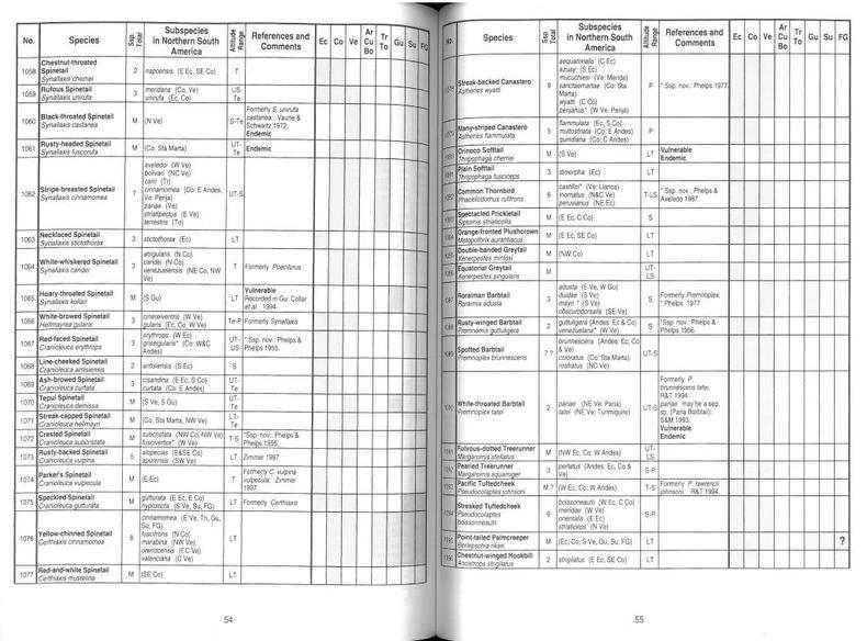 2000 Mountfield, Pica Press, 2000 : In-8 Raisin, Broché. 136 pp., liste des espèces et sous-espèces d'oiseaux avec leur répartiton en Equateur, Colombie, Vénézuela, Aruba, Curaçao, Bonaire, Trinidad, Tobago, Guyane Etat du neuf, Couv. remarquable, Dos impeccable, Intérieur frais.