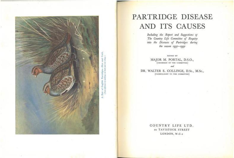 1932 London, Country Life, 1932 : In-4 Ecu, Broché. frontispice couleur, ix, 96 pp., 6 planches N&B hors-texte, 22 figures in-texte, un ouvrage sur la pathologie des perdrix Bon état, Couv. défraîchie, Dos satisfaisant, Intérieur frais.