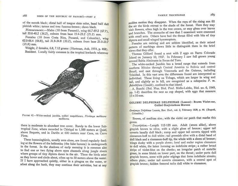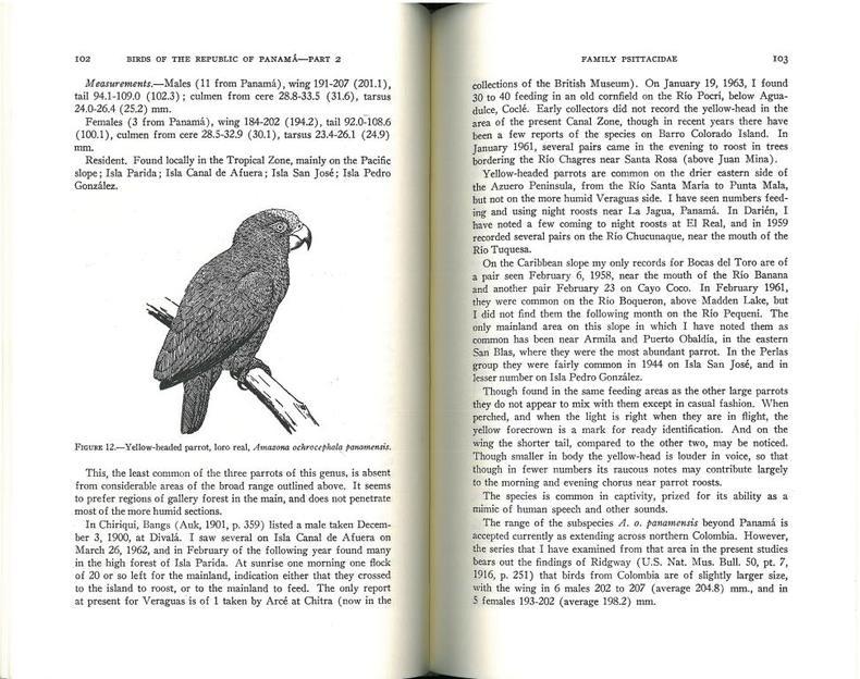 1968 Washington, Smithsonian Institution, 1968 : In-8 Carré, Cartonnage d'éditeurs. frontispice couleur, v, 605 pp., 75 figures in texte, 2° partie sur 4 de cet important travail sur l'avifaune du Panama Très bon état, Couv. fraîche, Dos impeccable, Intérieur frais.