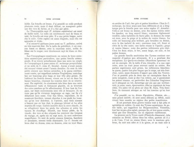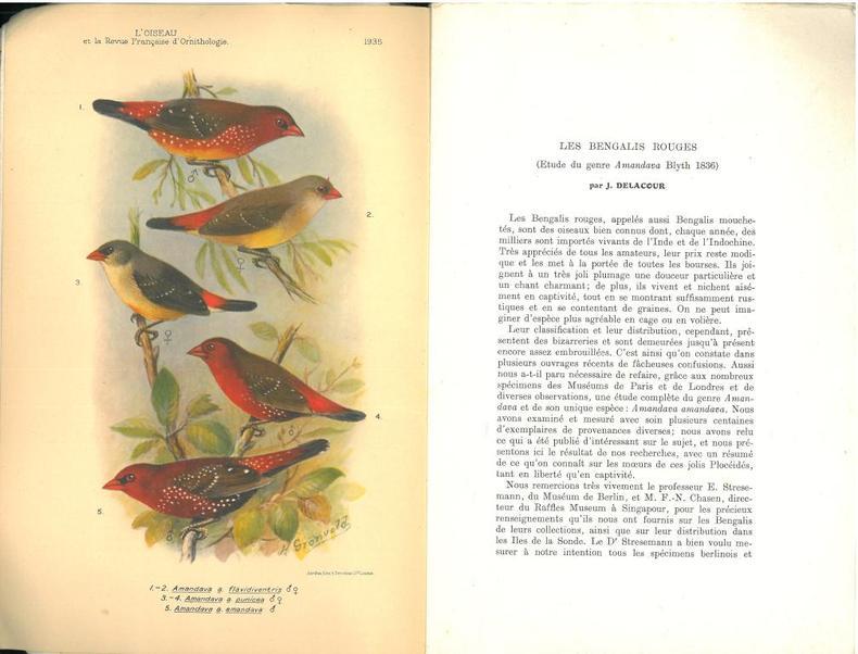 1935 Paris, l'O.R.F.O., 1935 : In-8 Raisin, Broché. 109 pp., 1 planches en couleurs hors-texte, ensemble d'articles sur les oiseaux de cage et de volière extraits de " l'oiseau et la revue fraçaise d'ornithologie " par les spécialistes de l'époque : Delacour, Legendre, Berlioz, ..., nom en page de garde, rare ! Etat moyen, Couv. convenable, Dos abîmé, Intérieur frais.