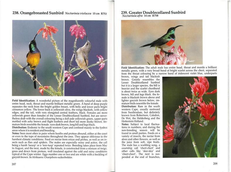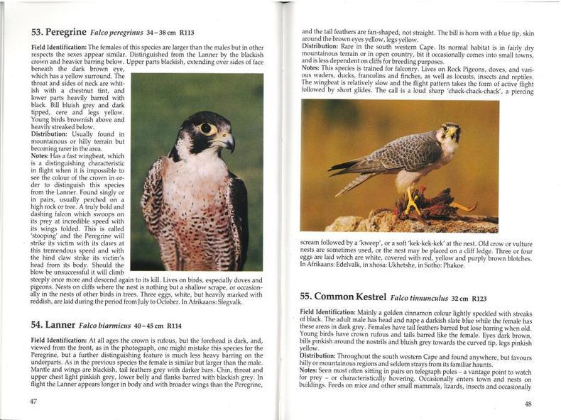 1982 Sloane Park, Sable Publishers, 1982 : In-8 Raisin, Cartonnage d'éditeurs. xi, 237 pp., 296 photos couleurs, 1 planche couleur, étiquette libraire en page de garde, un guide d'identification sur les 262 espèces d'oiseaux présente dans le Sud Ouest des provinces du Cap en Afrique du Sud Jaquette Très bon état, Couv. remarquable, Dos impeccable, Intérieur frais.