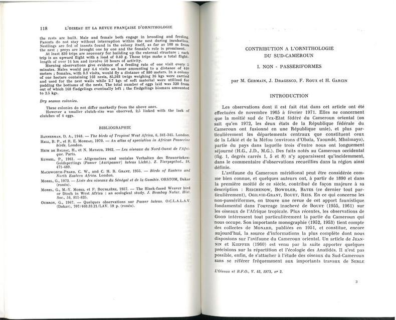 1973 Paris, S.O.F., 1973 : in-8, broché 354 pp., 8 planches N&B hors-texte, traite d'ornithologie par les plus éminents spécialistes de l'époque. Très bon état.