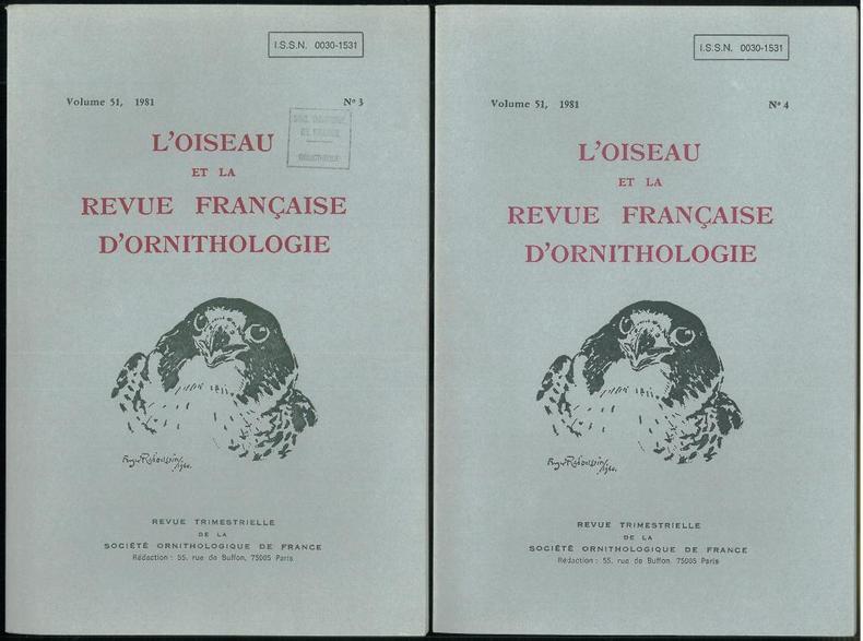 1981 Paris, S.O.F., 1981 : In-8 Raisin, Broché. 356 pp., 3 planches N&B hors-texte, traite d'ornithologie par les plus éminents spécialistes de l'époque Très bon état, Couv. fraîche, Dos impeccable, Intérieur frais.