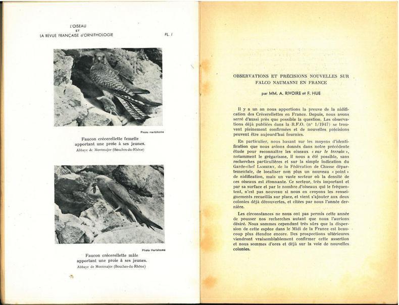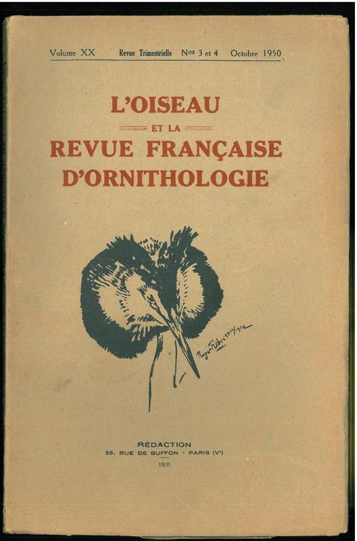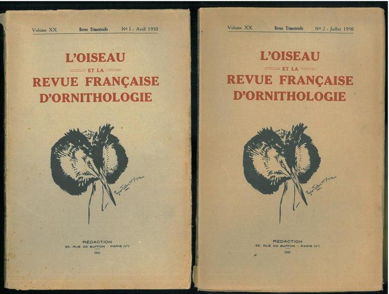 1950 Paris, S.O.F., 1950 : in-8, broché 281 pp., xliv, 7 planches N&B hors-texte, traite d'ornithologie par les plus éminents spécialistes de l'époque. Très bon état, 1° plat d'un fascicule renforcé avec du scotch invisible.