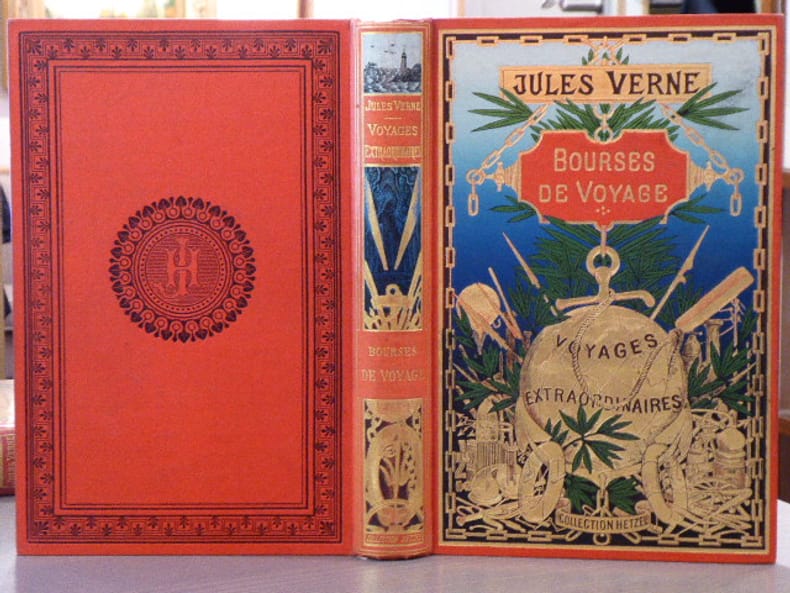 Jules Verne. Bourses de Voyage. In English /Jules Verne. Bourses de Voyage. Travel Desk. Paris. Hetzel Collection Edition. 1890. Paris. 47 illustrations by L. Benett, 12 color chromolythographs, numerous views (photos), 1 map-on-individual and in text. 28x19 sm. We have thousands of titles and often several copies of each title may be available. Please feel free to contact us for a detailed description of the copies available. SKUalb17ce3451cfa0acfd.