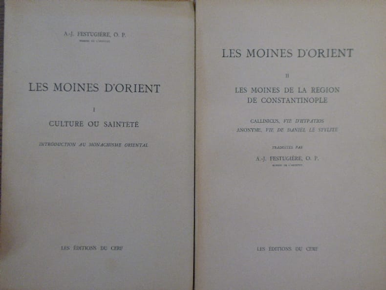 Les Editions Du Cerf France 1961 2 volumes in-8 ( 250 X 160 mm ), I. Culture ou Sainteté - introduction au Monachisme Oriental de 95 pages,II. Les Moines de la Région de Constantinople - Callinicus, vie d'Hypatios anonyme, vie de DANIEL le stylite de 176 pages, brochés sous couvertures imprimées beaux exemplaires.
