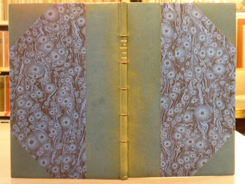 Typographie De Michel Baubet Aubagne 1860 In-8 ( 220 X 140 mm ) de 128-[3] pages, demi-maroquin bleu paon à coins, dos à nerfs janséniste, tête dorée, couvertures conservées ( Reliure signée de DUHAYON ). Édition originale ( de 1860, avec la couverture de remise en vente à la date de 1867 ). Légère décoloration, sinon bel exemplaire, finement relié.
