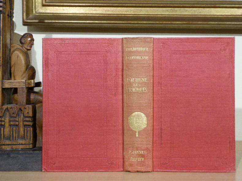 P. Jannet - "Bibliothèque Elzevirienne"- P. Daffis - Pagnerre Paris 1857 In-12 ( 165 X 105 mm ) de XXXIX-351 pages, pleine percaline rouge, dos lisse titré en lettres dorées et orné de la sphère elzévirienne dorée, plats ornés de filets d'encadrement et de fleurons d'angles à froid. Belle édition imprimée sur beau papier, volume non rogné. Bel exemplaire. BIBLIOTHEQUE ELZEVIRIENNE: Cette collection est un véritable monument de l'histoire de la librairie française.La collection complète ( 173 volumes ) est extrêmement difficile à constituer. Les textes qui la composent sont des ouvrages ou des manuscrits inédits ou très rares des XVe et XVIe siècles et par exception de quelques autres postérieurs au XVIIIe. Ces ouvrages contiennent les commentaires des plus grands érudits de l'époque. L'éditeur Pierre JANNET n'a reculé devant aucun sacrifice pour lancer sa collection. Ces jolies reliures en toile rouge à la manière anglaise ornées d'un globe doré feront le reste pour assurer la renommée de la Bibliothèque Elzévirienne.