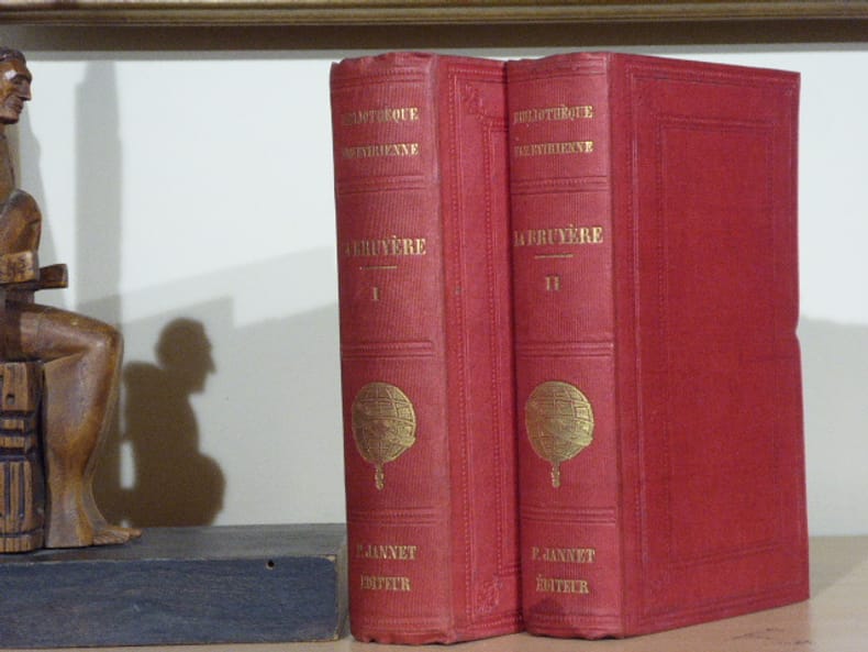 P. Jannet - "Bibliothèque Elzevirienne"- P. Daffis - Pagnerre Paris 1854 2 volumes in-12 ( 165 X 105 mm ) de XXX-407 et 412 pages pages pleine percaline rouge, dos lisses titrés en lettres dorées et ornés de la sphère elzévirienne dorée, plats ornés de filets d'encadrement à froid. Belle édition imprimée sur beau papier, volumes non rognés. Bons exemplaires.BIBLIOTHEQUE ELZEVIRIENNE: Cette collection est un véritable monument de l'histoire de la librairie française.La collection complète ( 173 volumes ) est extrêmement difficile à constituer. Les textes qui la composent sont des ouvrages ou des manuscrits inédits ou très rares des XVe et XVIe siècles et par exception de quelques autres postérieurs au XVIIIe. Ces ouvrages contiennent les commentaires des plus grands érudits de l'époque. L'éditeur Pierre JANNET n'a reculé devant aucun sacrifice pour lancer sa collection. Ces jolies reliures en toile rouge à la manière anglaise ornées d'un globe doré feront le reste pour assurer la renommée de la Bibliothèque Elzévirienne.