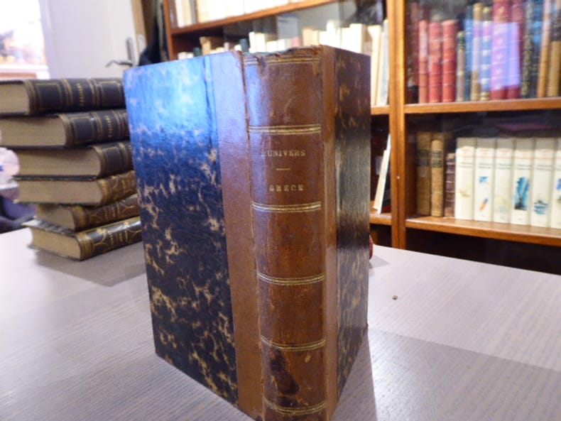 L'univers. Histoire et description de tous les peuples. Grèce, demi cuir , 22 x 13 cm, 447 pp, Bien complet des 112 GRAVURES et 2 CARTES DEPLIANTES IN FINE; des rousseurs sur l'ensemble de l'ouvrage, les planches les plus atteintes sont moins nombreuses.