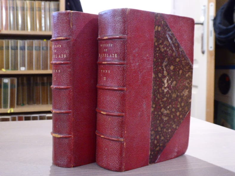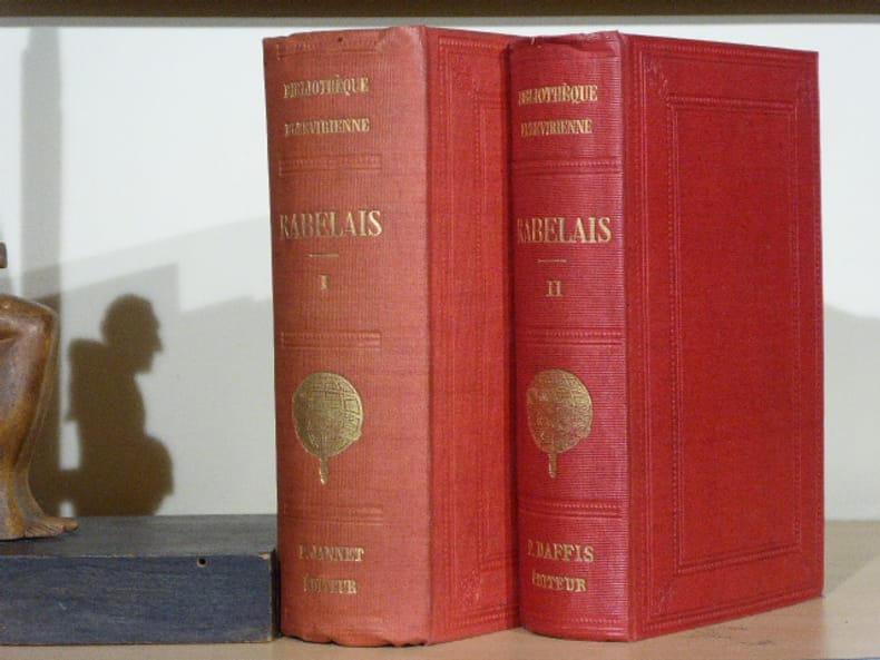 P. Jannet - "Bibliothèque Elzevirienne"- P. Daffis - Pagnerre Paris 1858 2 volumes in-12 ( 165 X 105 mm ) de XII-556 et 542 pages, demi-chagrin grenat à coins, dos à nerfs jansénistes, têtes dorées. Belle édition imprimée sur beau papier. Petites usures aux coins et aux nerfs, sinon bel ensemble.BIBLIOTHEQUE ELZEVIRIENNE: Cette collection est un véritable monument de l'histoire de la librairie française.La collection complète ( 173 volumes ) est extrêmement difficile à constituer. Les textes qui la composent sont des ouvrages ou des manuscrits inédits ou très rares des XVe et XVIe siècles et par exception de quelques autres postérieurs au XVIIIe. Ces ouvrages contiennent les commentaires des plus grands érudits de l'époque.
