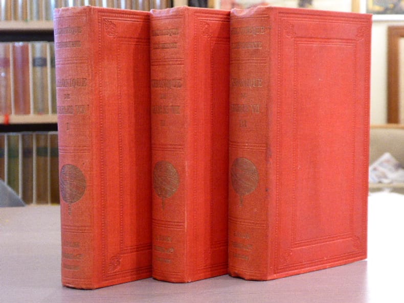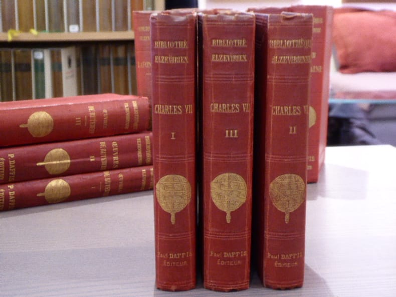 P. Jannet - "Bibliothèque Elzevirienne" Paris 1858 3 volumes in-12 ( 165 X 105 mm ) de LXIV-271, 346 et 408 pages pleine percaline rouge, dos lisses titrés en lettres dorées et ornés de la sphère elzévirienne dorée, plats ornés de filets d'encadrement à froid. Belle édition imprimée sur beau papier, volumes non rognés. Petites décolorations à la percaline, bons exemplaires.BIBLIOTHEQUE ELZEVIRIENNE: Cette collection est un véritable monument de l'histoire de la librairie française.La collection complète ( 173 volumes ) est extrêmement difficile à constituer. Les textes qui la composent sont des ouvrages ou des manuscrits inédits ou très rares des XVe et XVIe siècles et par exception de quelques autres postérieurs au XVIIIe. Ces ouvrages contiennent les commentaires des plus grands érudits de l'époque. L'éditeur Pierre JANNET n'a reculé devant aucun sacrifice pour lancer sa collection. Ces jolies reliures en toile rouge à la manière anglaise ornées d'un globe doré feront le reste pour assurer la renommée de la Bibliothèque Elzévirienne.