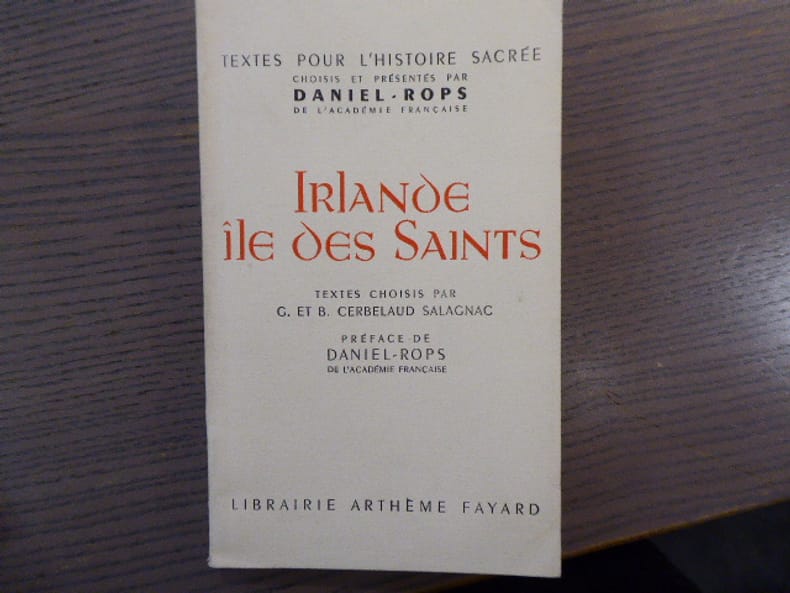Fayard "Textes pour l'histoire sacrée" 1961, in-12 broché, 296 p. (tache sans gravité et petite auréole au quatrième de couverture, sinon bon état, avec envoi d'un des auteurs) Sur bon papier ; index des noms. S'appuyant sur de nombreux textes peu connus, les auteurs retracent la geste sublime des moines et des saints irlandais qui vinrent de nouveau semer l'Evangile sur le continent quand celui-ci venait d'être dévasté par les invasions barbares.