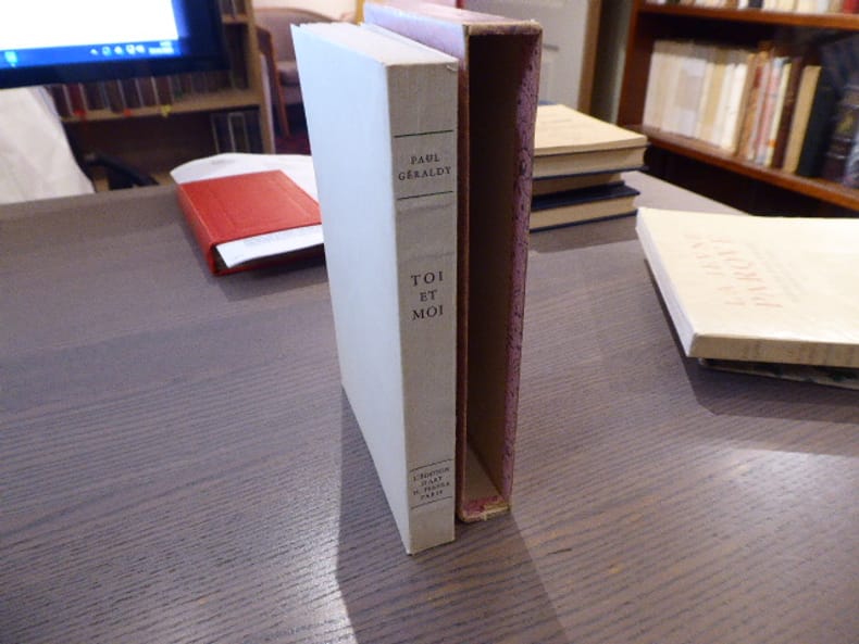 volume in-8, 20x13, 164 pages, sous couvertures rempliées, petites usures d'usage, bel état. Numéroté sur papier pur fil Outhenin Chalandre, 294/2200 Flammarion, 1931 Toi et moi Si tu m'aimais, et si je t'aimais, comme je t'aimerais ! "Paul Géraldy (1885-1983), poète français, est l'auteur de vers intimistes. Toi et moi, paru pour la première fois en 1913, a connu un succès considérable. Aujourd'hui encore, il demeure le livre de chevet de tous les amoureux." "Toi et Moi" est un recueil de poèmes de l'écrivain français Paul Géraldy, publié en 1912. Paul Géraldy, de son vrai nom Paul Lefèvre, était un poète et dramaturge français. "Toi et Moi" est considéré comme l'œuvre la plus célèbre de Paul Géraldy. Il s'agit d'un recueil de poèmes dédié à l'amour et aux relations amoureuses. Les poèmes explorent les différentes facettes de l'amour, depuis les premiers émois jusqu'aux joies et aux peines de la vie à deux. Les poèmes de "Toi et Moi" sont souvent empreints de sensualité et de romantisme. Ils expriment les sentiments intenses ressentis dans une relation amoureuse et explorent les thèmes de l'intimité, de la passion et de la complicité. Paul Géraldy était connu pour son style élégant et émotionnel. Ses poèmes sont empreints de lyrisme et de délicatesse, capturant les émotions les plus subtiles de l'amour. "Toi et Moi" a connu un grand succès à sa sortie et a été très apprécié par le public. Les poèmes de ce recueil ont souvent été cités et repris dans d'autres œuvres littéraires, et certains sont même devenus des classiques de la poésie amoureuse française. "Toi et Moi" reste une référence dans le domaine de la poésie amoureuse et continue d'être lu et apprécié par les amateurs de poésie romantique. ref/1