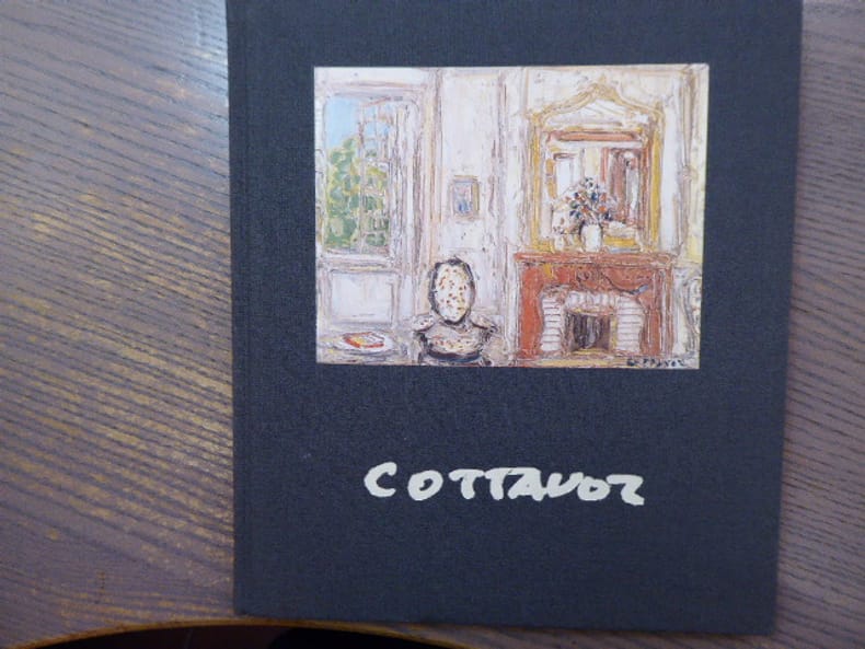 Paris : Galerie Taménaga-France, 1987. Reliure éditeur toilée marron (24,5x21,5cm), illustrée d'une reproduction couleur d'une toile de Cottavoz et du titre blanc en creux, 95 pages, reproductions des toiles en couleur et des dessins en noir, biographie, préface du journaliste et critique d'art Jean-Jacques Lerrant ("Cottavoz et l’École lyonnaise"), entretien avec le critique d'art Bertrand Duplessis, liste des oeuvres. Envoi (d'un des deux intervenants) en page avant-titre "Pour Paul Collomb, ce COTTAVOZ trop modeste quant au développement mais dense quant à la pensée de ce peintre ami. En témoignage d'amitié, (signature) Nouvel A, 1988." [BE]