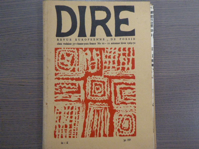 Vodaine Yutz 1970 In-8 ( 240 X 175 mm ) en feuilles sous couverture illustrée. Contribution de Praillet Arthur, Bearn Pierre, Butor Michel, Mari Paul, Gullung Armand, etc. Édition originale. Bel exemplaire.