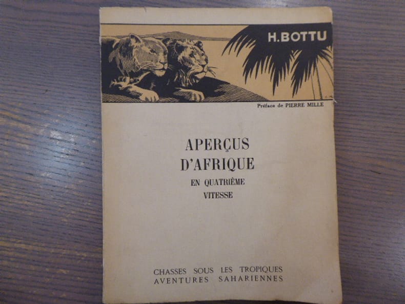 APERÇUS D'AFRIQUE EN QUATRIÈME VITESSE H.Bottu Chasses sous les tropiques, aventures sahariennes Illustrations de Vergé-Sarrat et Jean André vol, broché, 240x200, 110pp, non coupées ( non lus ), très bel exemplaire édité par les Laboratoires Bottu, 1934