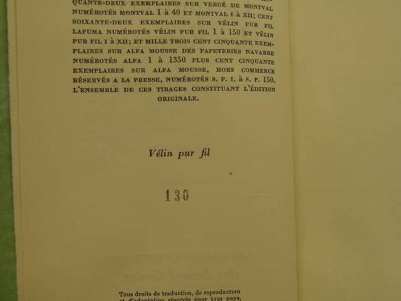 Grasset Paris 1952 In-12 ( 190 X 120 mm ) de 280 pages, broché. Edition originale, 1 des 150 exemplaires numérotés sur vélin pur fil Lafuma ( No. 130 ). Parfait état.