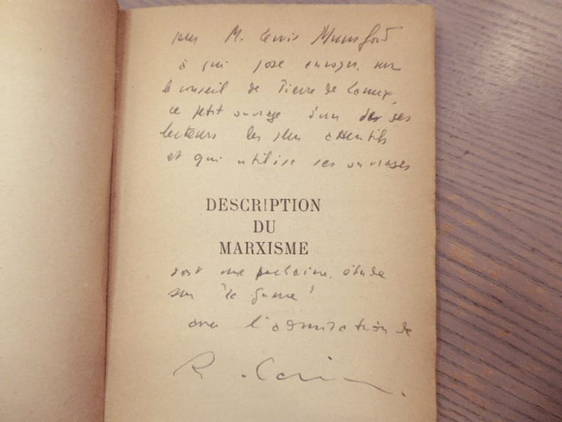 Gallimard - NRF Paris 1950 In-12 ( 190 X 120 mm ) de 60 pages, broché sous couverture imprimée. EDITION ORIGINALE ( pas de grands papiers annoncés ). Couverture légèrement insolée, petit tampon ex-libris au contre-plat, exemplaire enrichi d'un très bel envoi autographe signé de Roger CAILLOIS à Lewis MUMFORD.Lewis MUMFORD ( 1895-1990 ) est un historien américain, spécialisé dans lhistoire de la technologie et de la science, ainsi que dans lhistoire de lurbanisme. Lors de la « chasse aux sorcières » du maccarthysme, ses positions lui valent à plusieurs reprises dêtre accusé de sympathie envers le communisme et donc inquiété professionnellement il ne manque pas de préciser que le système communiste navait rien à envier aux autres systèmes économiques. Autrement dit, ses positions étaient au-delà de ce clivage doctrinal.