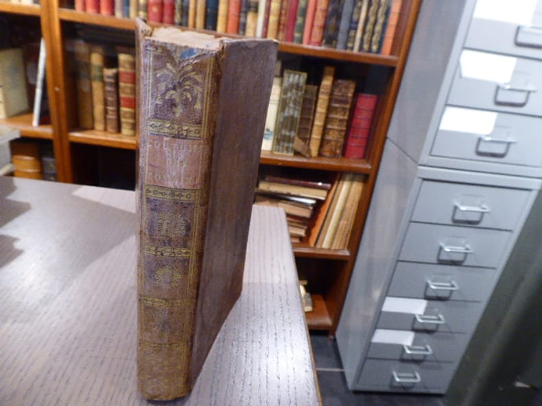 Paris, Jean Desaint, 1741 in-12, XVII-[3]-415-8 pp., typographie en petit corps, veau brun marbré, dos à nerfs cloisonné et fleuronné, pièce de titre fauve, encadrement de simple filet à froid sur les plats, tranches mouchetées de rouge (reliure de l'époque). Coins et coiffes restaurés maladroitement.