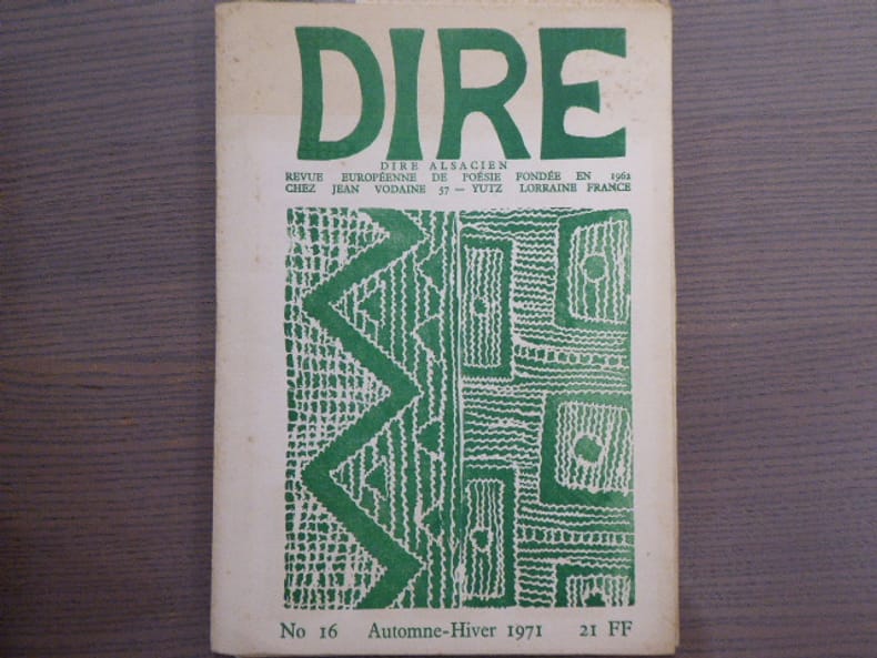 Vodaine Metz 1971 In-4 ( 300 X 220 mm ) en feuilles sous couverture illustrée. Contribution de Maxime Alexandre, Madeleine Walller, , Guy Heitz, Sylvie Rell, Joseph-Paul Schneider, Marc Jung, Jen-Paul Klee, Jean-Claude Walter, Adrien Fink, Yvan Goll, Jean-Paul de Dadelsen, Conrad Winter, Denise Grappe, Jean Hans Arp, Josef Berge, Claude Vigée, Yvan Goll, Nathan Katz. Bon exemplaire.