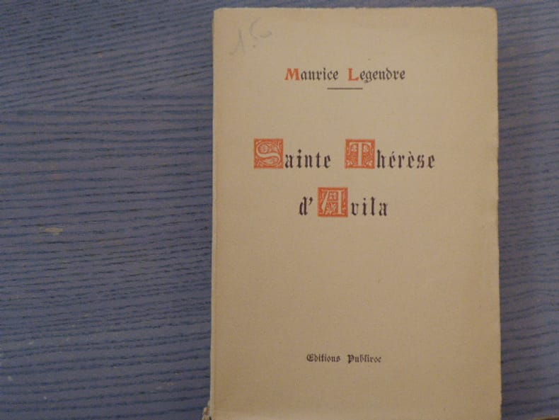 Un volume grand in-8 (17, 5 x 24 cm), broché, couverture souple éditeur à rabats, 1er plat illustré d’un plan de couleur jaune avec un trait rouge unissant tous les Carmels fondés en Espagne par Sainte THÉRESE D’AVILA . 218 pages dont une Table des matières suivies de 57 photographies en noir. Thérese d’AVILA (1515-1582), qui fut canonisée 40 ans après sa mort, a laissé des écrits sur son expérience spirituelle qui font d’elle une des figures majeures de la littérature mystique. Elle est également connue pour avoir fondé 17 couvents de Carmélites, dans lesquels ces dernières vivaient absolument retranchées du monde et dans un silence total.Notre exemplaire, devenu peu fréquent, présente de très discrètes traces de manipulation sur la couverture, mais est totalement intact à l’intérieur. ETAT TRES SATISFAISANT.