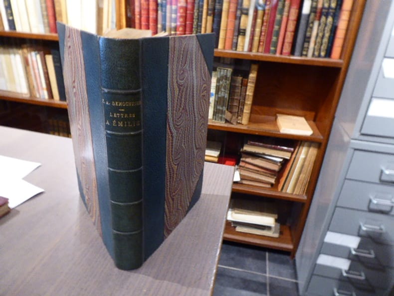 A Paris, chez Nicolle, libraire, rue de Seine, n°12, A Paris, chez Dabot, libraire, place S.-Germ.-l'Aux., n°41, A Paris, chez Corbet, libraire, quai des Augustins, n°63 Relié 1816 "In-12 (10 x 15,2 cm), reliure pleine peau, dos lisse orné de dorures, liseré d'encadrement sur les plats, tranches dorées, gardes couleur, 96 et 102 pages, deux volumes en un : troisième partie et quatrième partie des ""Lettres à Emile sur la mythologie"" (faisant partie des ""Oeuvres de C.A. Demoustier, chez Corbet, Dabot et Nicolle), gravures en taille douce hors texte ; mors supérieur légèrement fendu en tête, par ailleurs bon état. Livraison a domicile (La Poste) ou en Mondial Relay sur simple demande."