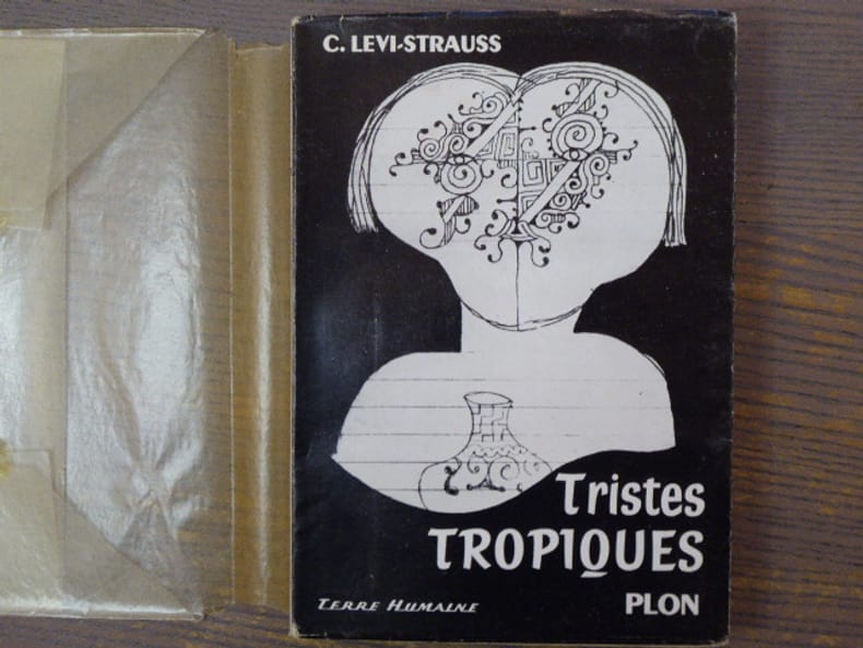 Plon "Terre Humaine Paris 1956 In-8 ( 205 X 145 mm ) de [8]-462-[1] pages, broché sous jaquette illustrée de l'éditeur. 63 reproductions photographiques en noir hors texte figures dans le texte. Exemplaire du "Service de Presse" avec indication de "9e mille" au dos de la jaquette. Sans doute, le livre d'ethnographie le plus célèbre au monde, Tristes tropiques mélange étude scientifique et réflexions philosophique. Ils relatent les voyages et les observations de Lévi-Strauss, notamment ceux concernant le Brésil qui constitue la majorité du livre. Bel exemplaire, bien complet de sa jaquette ornée d'un dessin d'une femme Caduveo.