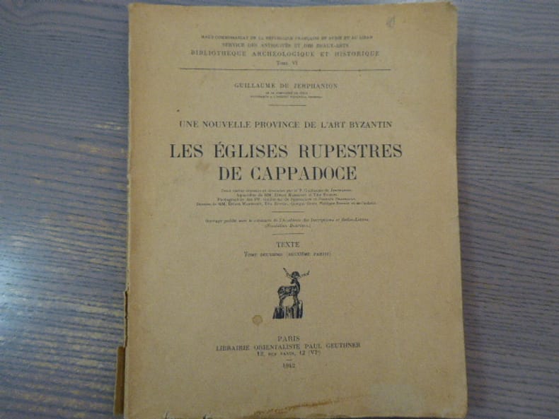 Librairie Orientaliste Paul Geuthner Paris 1942 In-8 ( 290 X 230 mm ) de 533 pages, broché sous couverture imprimée. Orné de deux cartes dressées et dessinées par le P. Guillaume de Jerphanion. Aquarelles de MM. Ernest Mamboury et Tito Ridolfi. Photographies des PP. Guillaume fr Jerphanion et Joannès Gransault. Dessins de MM. Ernest Mamboury, Tito Ridolphi, Giorgio Guidi, Philippe Burnot et de l'auteur. Couvertures effrangées, mors fendus, intérieur frais.