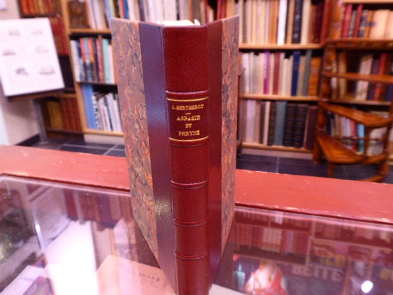 Paris Editions d'art et de littérature, sans date (1913) 1913 in 12 (19x12,5) 1 volume reliure demi chagrin rouge de l'époque, dos lisse orné d'un très original décor de triangle dorés, flanqués de cercles dorés de taille décroissante, XII et 299 pages, quelques rousseurs. Ouvrage illustré de 200 dessins archéologiques de Notor d'aprés l'Antique, peintures de vases grecs, sculptures et bas-reliefs. Collection : Les Femmes illustres. Bel exemplaire, finement relié ( Photographies sur demande / We can send pictures of this book on simple request )