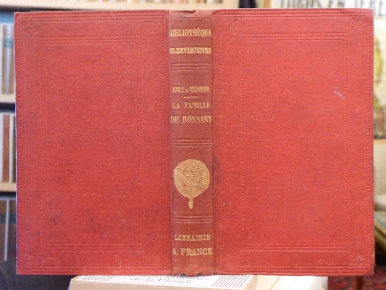 Librairie A. Franck - "Bibliothèque Elzevirienne" Paris 1868 In-12 ( 165 X 105 mm ) de 358 pages, pleine percaline rouge, dos lisse titré en lettres dorées et orné de la sphère elzévirienne dorée, plats ornés de filets d'encadrement à froid. Planches dépliantes hors-texte. Belle édition imprimée sur beau papier, volume non rogné. Bon exemplaire. BIBLIOTHEQUE ELZEVIRIENNE: Cette collection est un véritable monument de l'histoire de la librairie française.La collection complète ( 173 volumes ) est extrêmement difficile à constituer.Les textes qui la composent sont des ouvrages ou des manuscrits inédits ou très rares des XVe et XVIe siècles et par exception de quelques autres postérieurs au XVIIIe. Ces ouvrages contiennent les commentaires des plus grands érudits de l'époque.L'éditeur Pierre JANNET n'a reculé devant aucun sacrifice pour lancer sa collection.Ces jolies reliures en toile rouge à la manière anglaise ornées d'un globe doré feront le reste pour assurer la renommée de la Bibliothèque Elzévirienne.