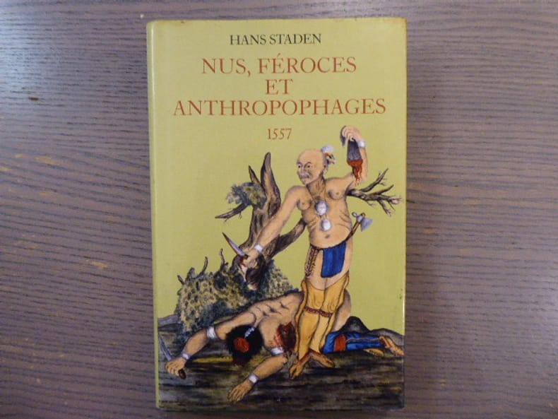 Nouvelle édition de la traduction française (cf Sabin, 90059). Reliure en demi chagrin rouge, dos lisse orné de doubles filets dorés et à froid, frises dorées en tête et en queue, plats de papier mabré, gares et contreplats de papier à la cuve, premier plat de couverture muette rose conservé, reliure du XXe siècle. Rousseurs, un infime accroc en pied du dos. Troisième volume des Voyages, relations et mémoires originaux pour servir à l'histoire de la découverte de l'Amérique, publiés par Henri Ternaux-Compans. Il s'agit ici de la première version française de la relation d'Hans Staden, de Hombourg en Hesse, qui parut en allemand à Marbourg en 1557 (1 vol. petit in-4). De Bry la fit traduire en latin, et l'inséra dans sa Collection des grands voyages. Staden relate ici son voyage au Brésil où il séjourna de 1547 à 1555, et détaille les murs et coutumes des Tupinambas chez lesquels il avait été fait prisonnier. - Photographies et détails sur www.Edition-Originale.com -
