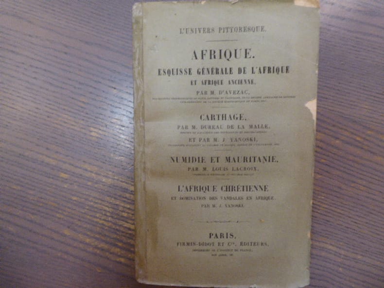Firmin-Didot Et Cie Editeurs Dakar 1969 4 volumes reliés en 1 in-8 ( 220 X 135 mm ) de pages, broché sous couverture imprimée.I. Afrique. Esquisse Générale de l'Afrique et Afrique Ancienne de 272 pages,II. Carthage de 170 pages,III. Numidie et Mauritanie de 96 pages,IV. L'Afrique Chrétienne et Domination des Vandales en Afrique de 108 pages. Illustrations hors-texte en fin d'ouvrage. Couvertures effrangées, dos abîmé avec manques et scotché.