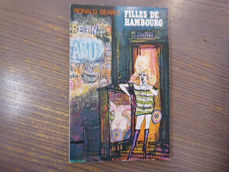 Royaume-Uni, London, Editions Weidenfeld and Nicolson 1970. In-8 cartonnage éditeur, pleine toile rouge, non paginé, au format 21,5 x 14 cm. Dos rond avec titre doré. Plats et intérieur frais. Complet de la jaquette avec titre. Recueil de superbes dessins en noir et blanc de prostituées et de vedettes du strip-tease hambourgeois par Ronald Searle. Rare édition originale anglaise de ce livre paru à l'origina en france, chez Jean-Jacques Pauvert en 1969. Superbe état général.